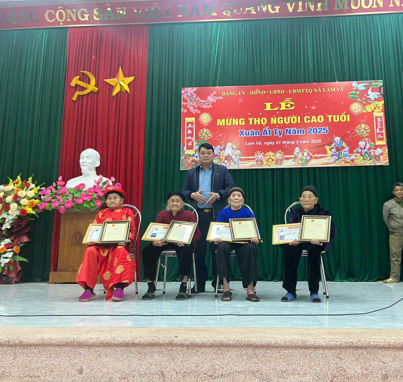 Chiều ngày 21/02/2025 UBND xã Lam Vỹ tổ chức Lễ Chúc thọ, mừng thọ người cao tuổi trên địa bàn xã